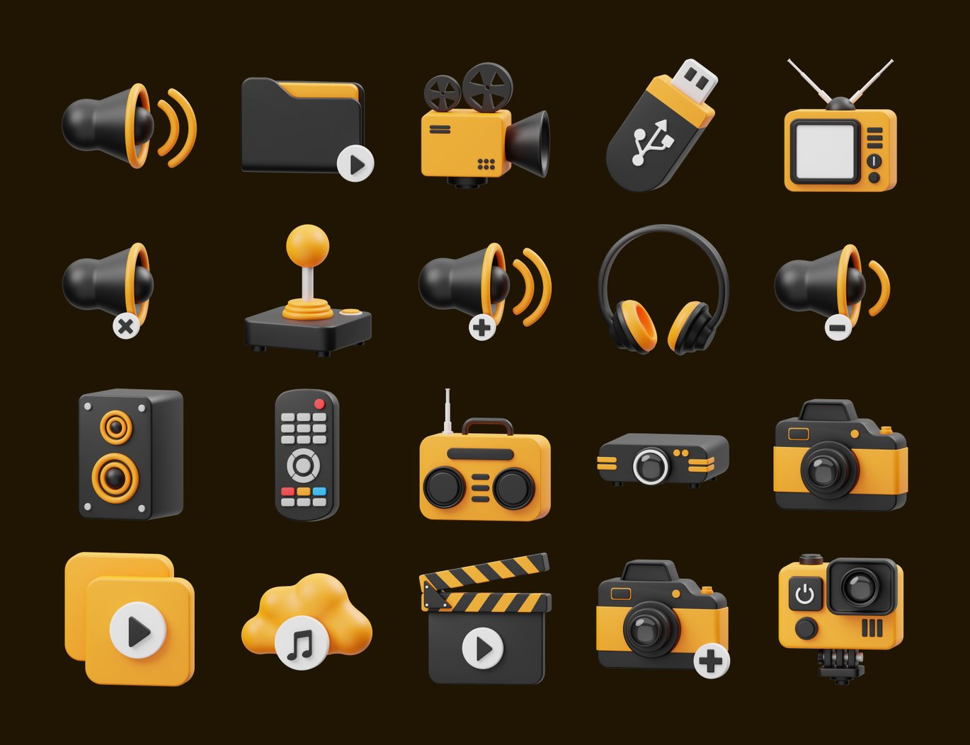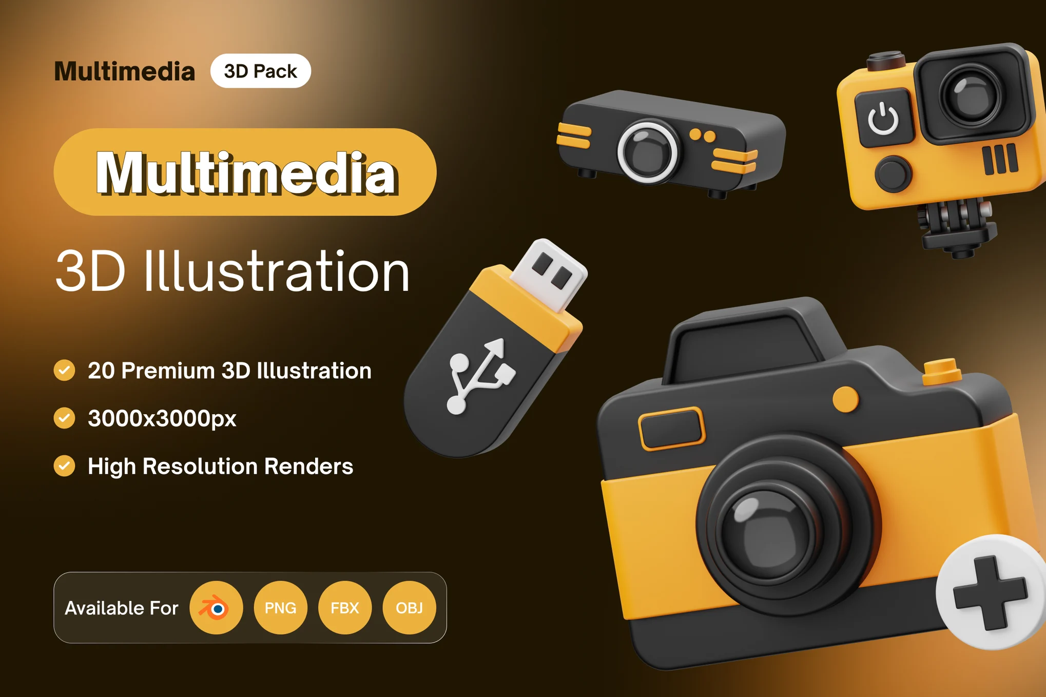 Multimedia 3D Icon 包含20 个现成的 3D 多媒体图标文件对象,适用于网站、移动应用程序等。使用 3D 资源增强您的设计。