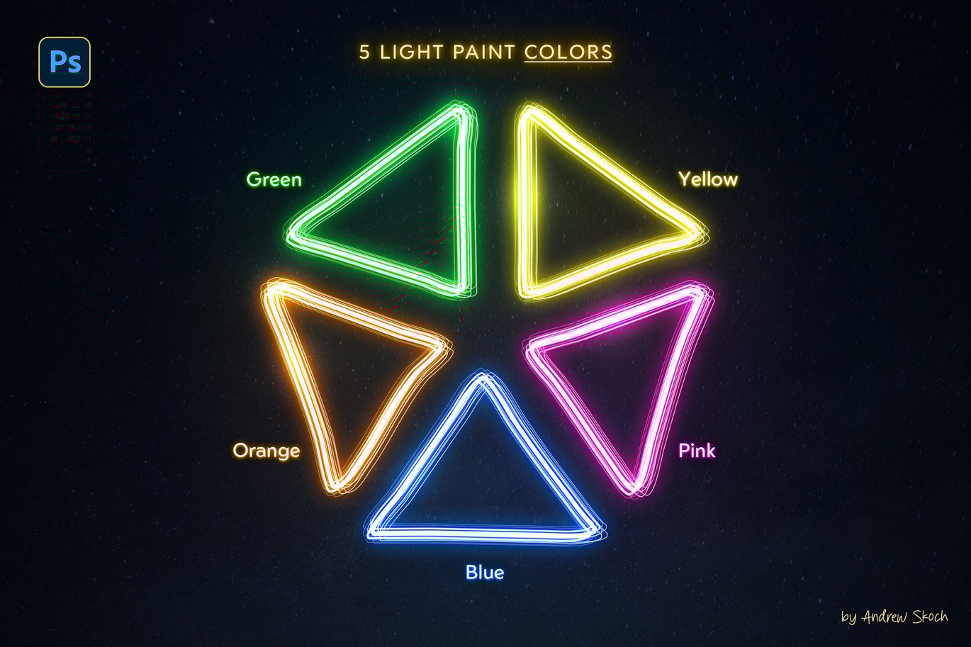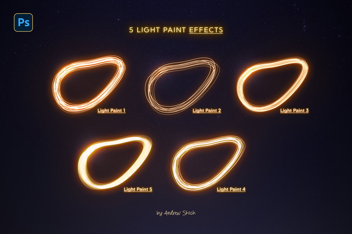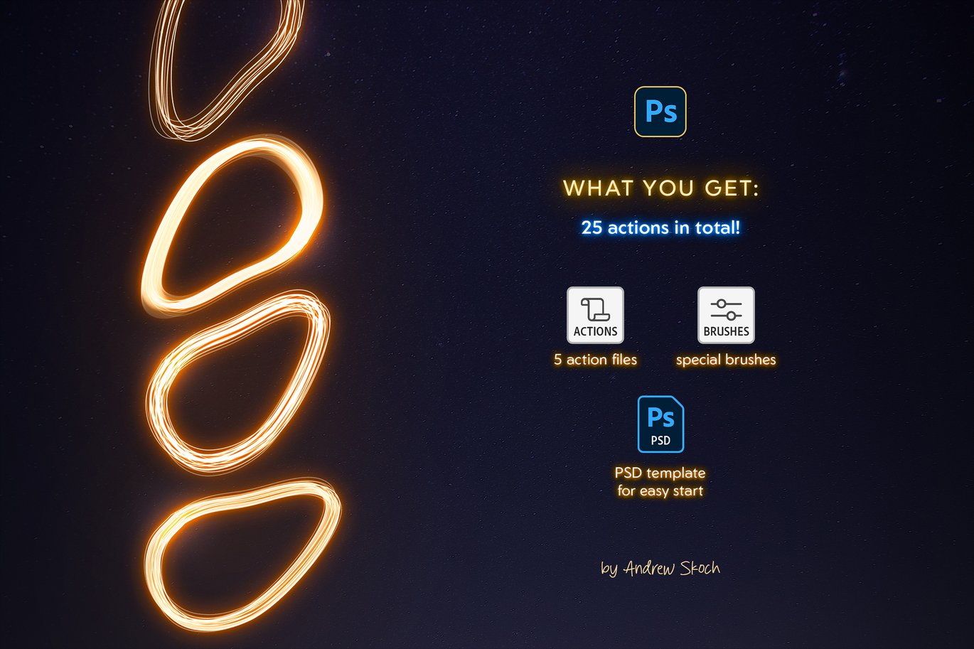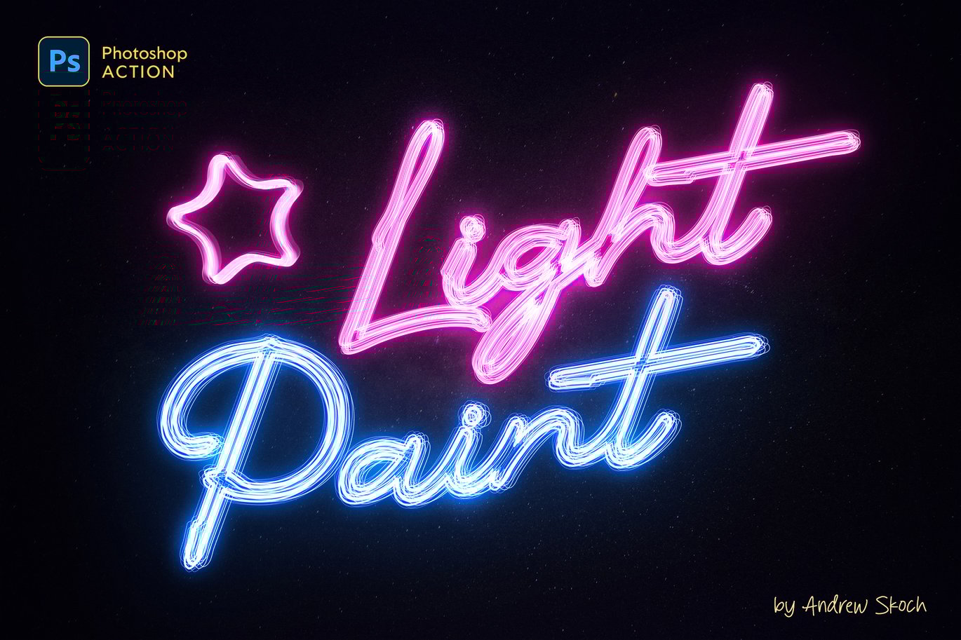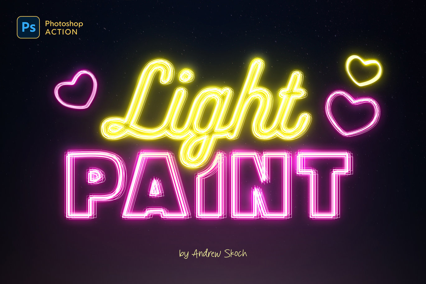 Light Painting Photoshop Action 在几秒钟内创建令人惊叹的发光笔触 !该工具具有 5 种动态光绘风格和 5 种鲜艳的色彩,非常适合为文本、形状或路径添加令人兴奋的效果。无论您是设计海报、专辑封面还是数字艺术,只需单击一下,此作即可带来现代霓虹灯的美感。